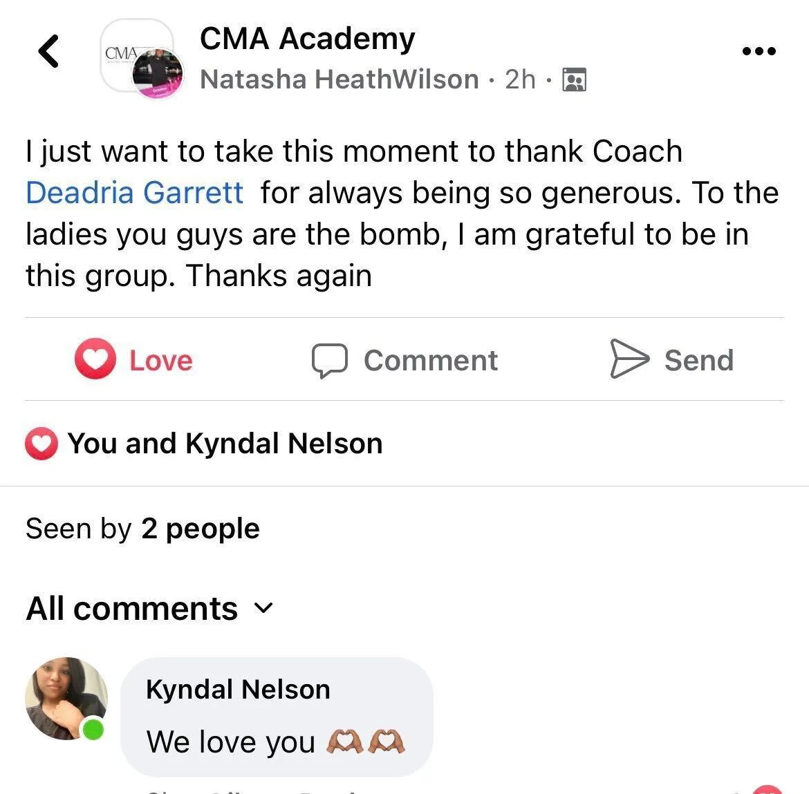 CMA Academy promotes transform and accelerate faith based women’s life from average to purposeful. Our goal is for women to heal, discover what they’re called to do and create a brand that the world needs. This is done through 12 week coaching model will help women develop their voice, niche & purpose in entrepreneurship. Our goal is to support your healing to break the traumas that prevents you from building a legacy. We value authenticity, sisterhood and God's word.